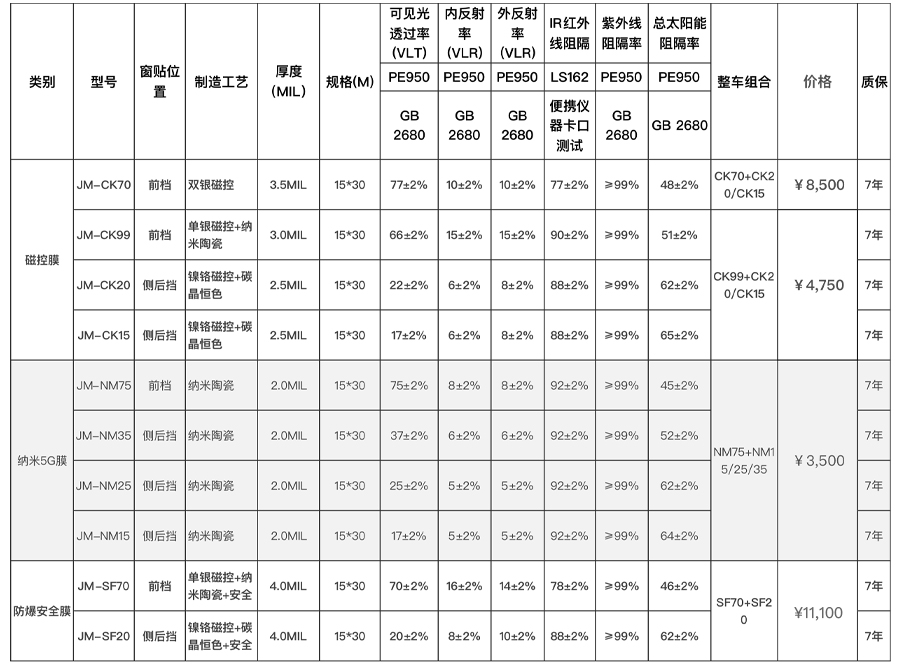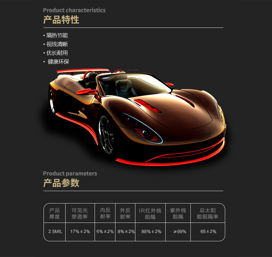類別:磁控膜 厚度:2.5MIL 質(zhì)保:七年